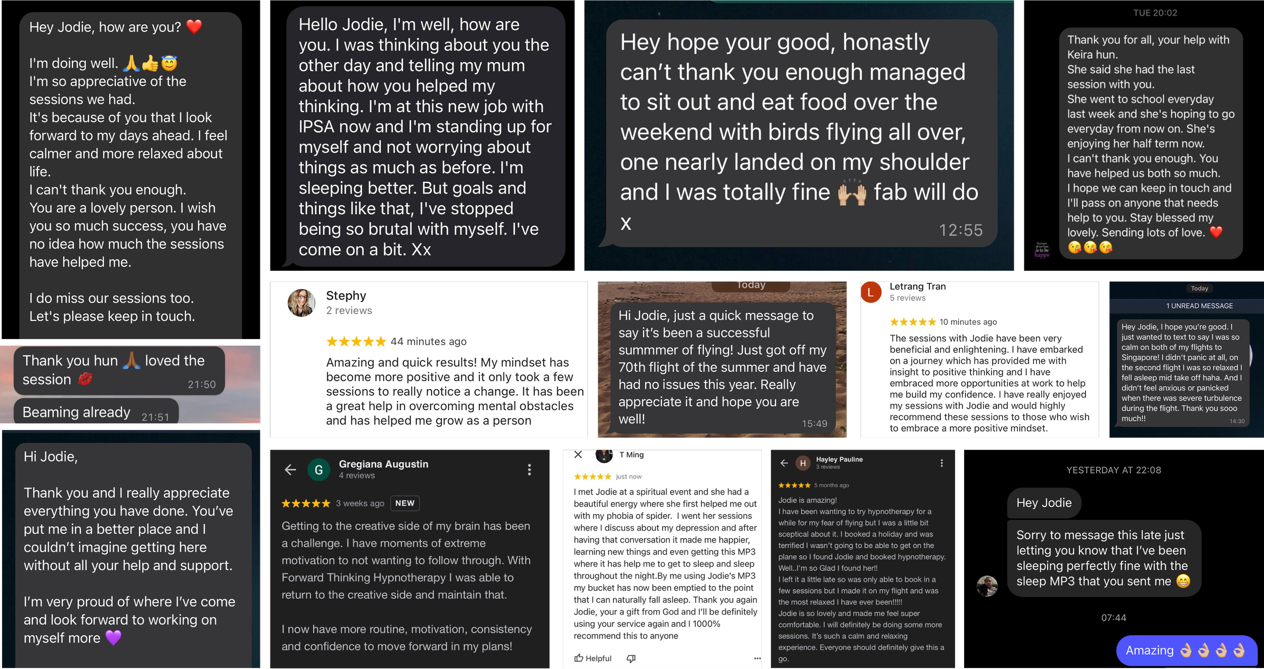 Steph Robinson13 August 2025Trustindex verifies that the original source of the review is Google. Jodie is such a lovely person and is absolutely amazing at what she does! I’m so grateful for all her help! Highly recommend to anyone :) Aideen Kavanagh9 August 2025Trustindex verifies that the original source of the review is Google. Absolutely loved working with Jodie! I looked forward to our sessions every week! I went in open minded but didn’t fully believe hypnotherapy would work for me. Not only did it help my anxiety but it also helped me get focussed on what I want and had unexpected benefits like improved mood and sleep! Can’t wait to have more sessions ASAP. Thanks so so much Jodie! tigijockel130 July 2025Trustindex verifies that the original source of the review is Google. A massive thank you for my sessions, i really valued having that dedicated time just for me. I always came away from them feeling refreshed, lighter and with solid actions to make me feel great over the next week. Also the relaxation audio..every time I listen to it I feel SOO much better after (and in the morning), I listen to it in the daytime sometimes as well as the night, and it makes me focus better for the afternoon! Thank you thank you! Steffie Martin17 June 2025Trustindex verifies that the original source of the review is Google. I am so grateful for finding Jodie on Instagram. I did 6 sessions and had a great time working with her. The week after the last one, I started noticing that I had been getting better results at work. I was starting to feel more balanced mood wise as well. These were the things I wanted us to work on. It’s been 3 weeks now and everything keeps getting better and better. I am convinced that the hypnotherapy sessions are what caused the shift and brought me in alignment. I’ve been recommending her to everyone! Thank you so much! abi c13 June 2025Trustindex verifies that the original source of the review is Google. Jodie was incredible. Her kind and warm presence instantly makes you feel safe and her techniques and talent is unmatched. Throughout my course, i felt calm and heard. when I completed my course, I left feeling equipped with the tools to help myself, and I know Jodie’s door is always open. Anisa Elkhamlichi7 June 2025Trustindex verifies that the original source of the review is Google. Where do I start…..working with Jodie quite literally changed my life. I was so worried about Hypnotherapy and already so anxious due to an anxiety disorder but by the end of the session I felt amazing, I felt a huge weight lifted and just knew things were going to get better. I really struggled with leaving the house, negative thinking, crowds and so much more but by my third session I was facing everything head on with confidence. I’ve had multiple CBT sessions/ medication and nothing has worked until I came across Jodie. I can’t thank or recommend her enough. I completed a 6 week course and will absolutely continue to work with Jodie on top up sessions. Erika Elms4 June 2025Trustindex verifies that the original source of the review is Google. Before I met with Jodie my brain was all over the place, I couldn’t focus, I couldn’t stay on top of anything and I felt like everything around me was falling apart and all I wanted to do was hide. I was in such a negative state of mind. I was sceptical at first as CBT therapy never did any good for me, so I wasn’t sure how hypnotherapy would work. But just after a few session with Jodie, I learned to shift my thinking and even now, when my husband or I have a bad day and feel down and under, the first thing we do when we get into bed is list off all the things we’re grateful for (the three P’s) and life doesn’t seem so bad after all! Thank you Jodie, for equipping me with the right tools to enable me to thrive, and for being such a wonderful person and always making me feel at ease, and never ever judging. Can’t wait for our next session! LoveCornwall4 June 2025Trustindex verifies that the original source of the review is Google. Jodie has literally been an absolute god send for me 🙏🩷 I’ve tried every type of treatment for my mental health, but not hypno. I was sceptical, however the 6 sessions I had with her, have been more helpful than the other treatment I have tried in the past 20 years. I am 100% going to book in for some more sessions - she holds me accountable and always makes me feel worthy and comfortable. If you are thinking about starting hypnotherapy, book in with Jodie now! Samantha Monaghan14 May 2025Trustindex verifies that the original source of the review is Google. I have loved my 6 sessions with Jodie, she really challenges you and helps you step out of your comfort zone. Your 3 ps will be your new best friend to start or end your day. I'm feeling so much better than what I was before I started with Jodie and I'm able to enjoy life again. Thank you Jodie definitely recommend. xx Ella C13 May 2025Trustindex verifies that the original source of the review is Google. Working with Jodie has been one of the most effective treatments I have experienced for my PTSD after years of searching for relief. Her approach provides me with meaningful progress and symptom reduction. I deeply appreciate her compassionate approach which has made a significant difference for me.Load more